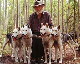 THE FOUR HORSEMEN (males of the 1991 LL litter) pose with the Boss. Sepallop,Sepalleo, Sepalleopard and Sepallampo, sons of Hercules of SA, are happy senior citizens at Seppala Kennels.