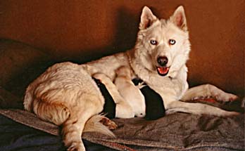 RIVER VIEW'S SPRITE produced excellent sleddogs to XPACE. Her first litter, the T litter of 1995, was so successful that the breeding was repeated the following year, producing the K litter, shown here at about three weeks old. She was a fine mother. |